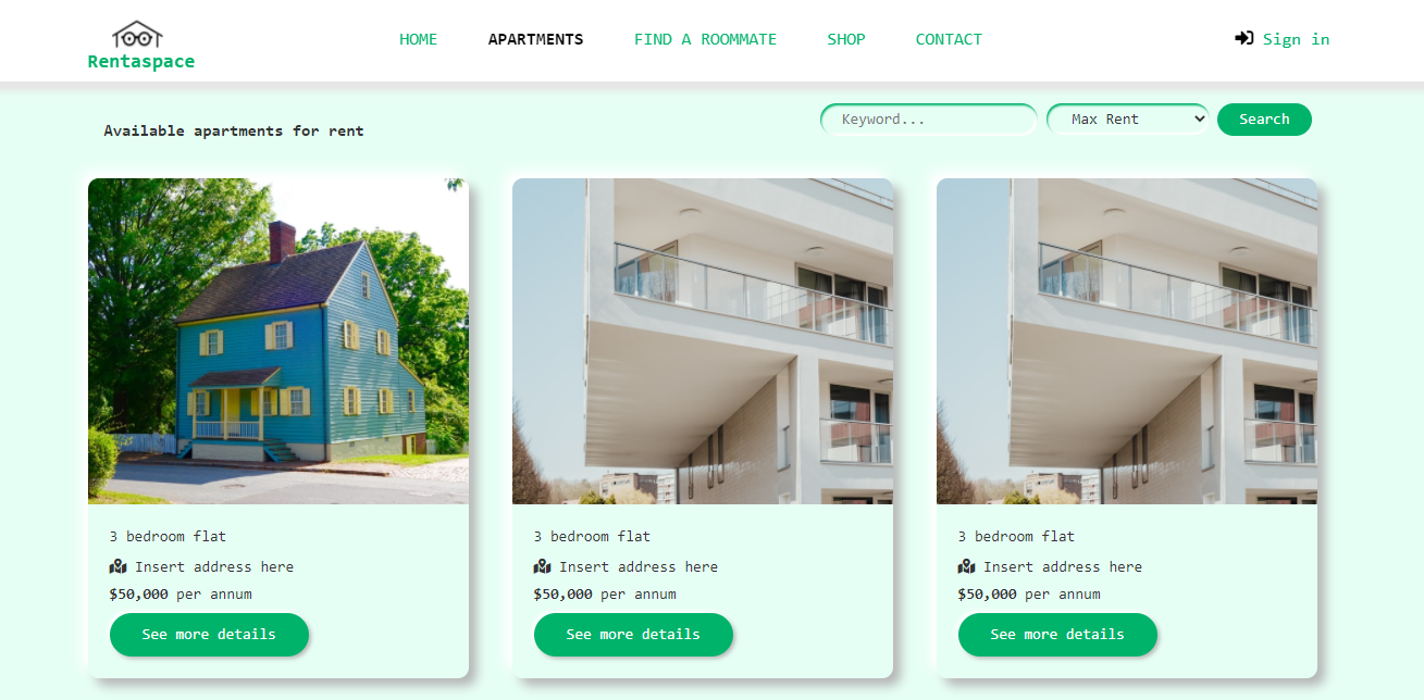 Website for Lagos-based real estate company with the purpose of listing properties intended for sale or rent.